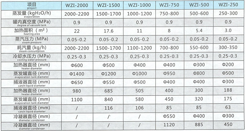 WZⅠ型有一效、二效、三效系列规格,另有Q型为强制外循环蒸发器。本品可广泛用于医药、食品、化工、轻工等行业的水或有机溶剂的蒸发浓缩。特别适用于热敏性物料,(例如中药生产的水、醇提取液、抗生素发酵液、牛奶、果汁等),在真空条件下进行低温连续浓缩,可确保产品质量。