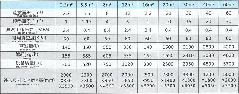 本薄膜蒸发器机组由蒸发器、汽液分离器、预热器三个部件和一只简易分离器组成,蒸发器为升膜式列管换热器。该蒸发器具有生产能力大、效率高、物料受热时间短等特点,适用于制药、食品、化工等行业的稀溶液浓缩,本设备与物料接触部分采用不锈钢制造,具有良好的耐腐蚀性能,经久耐用,符合药品卫生要求。